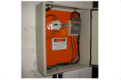A caixa de proteção deve ser metálica ou de material não combustível, tanto na sua parte interna ou externa. Se o quadro de luz for antigo ou de madeira, por exemplo, é necessário substituí-lo conforme norma de eletricidade NR-10. Os quadros de energia devem ser protegidos por uma barreira que evite o acesso aos barramentos ou fios da instalação elétrica, evitando assim o choque elétrico.